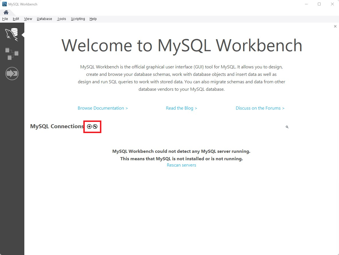 3. MySQL Connections 옆의 "+"버튼을 클릭합니다.