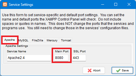 3. Apache - Main Port 값을 80이 아닌 다른 숫자로 변경합니다.