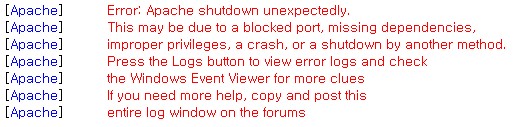 [XAMPP] apache start 오류 (Error: Apache shutdown unexpectedly.)